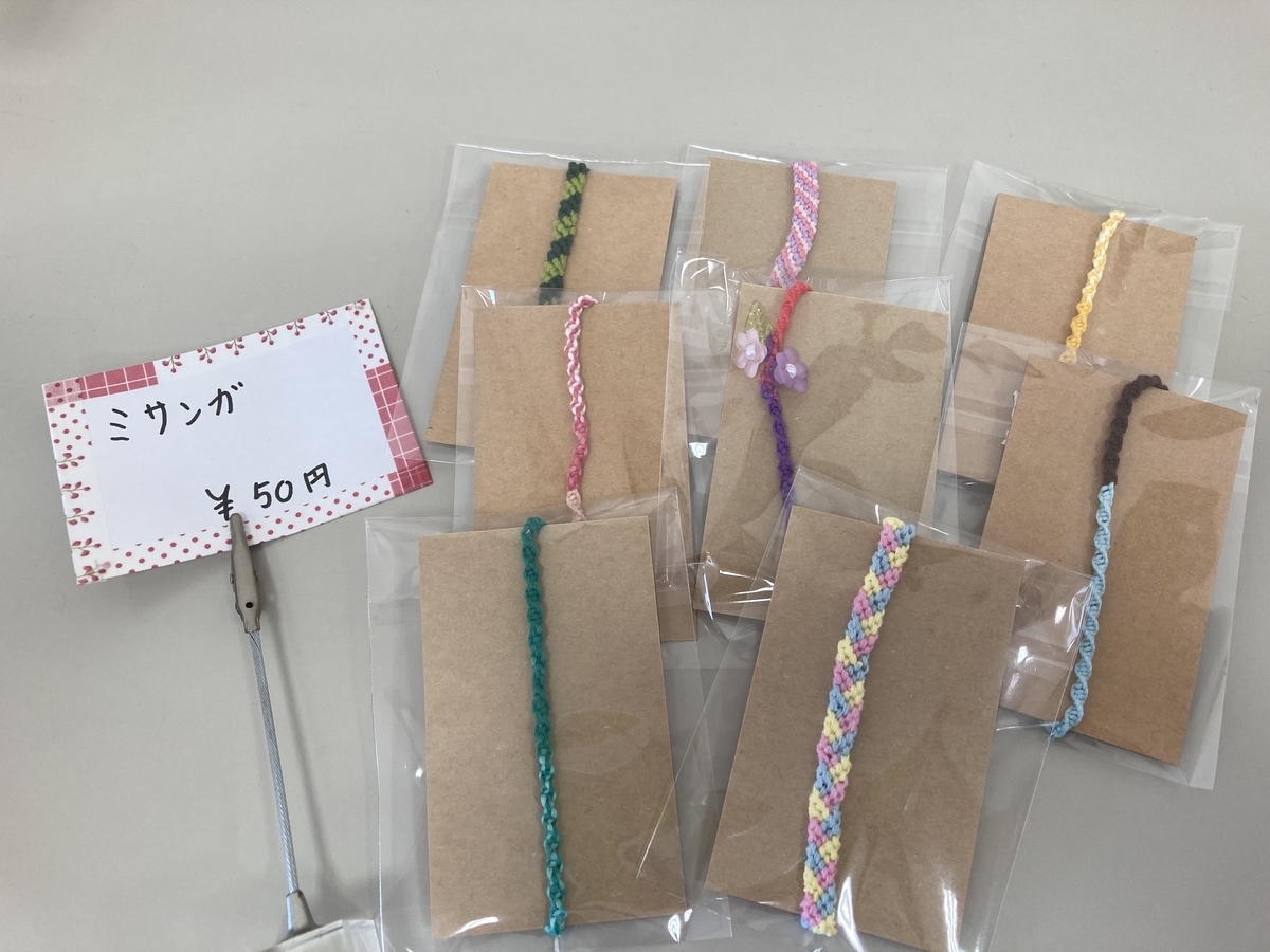 クレシータのメンバーが作ったハーバリュームボールペンとミサンガを販売しています。